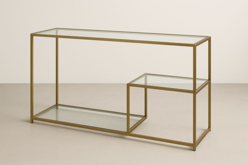 Tavolo Consolle in Acciaio Dorato e Vetro Temperato€135,00