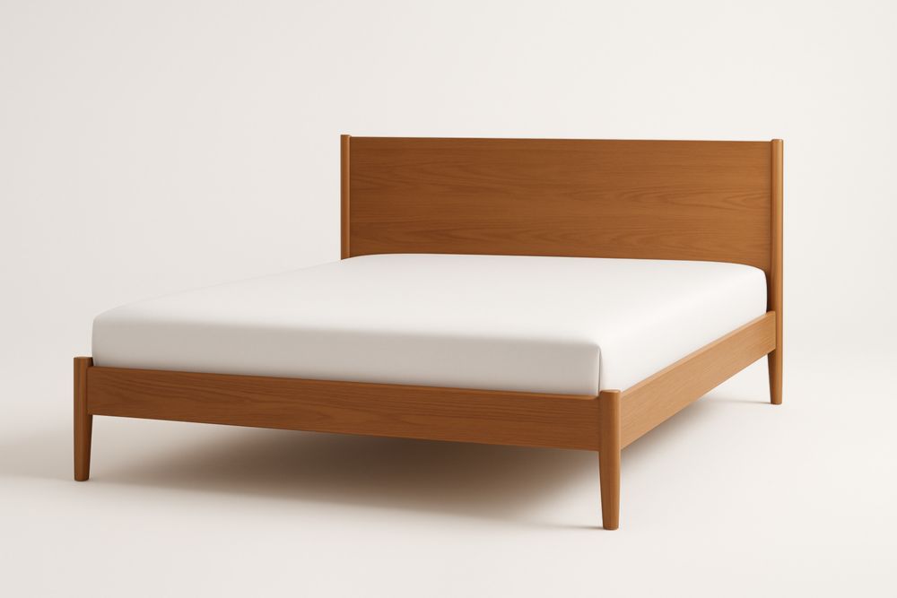 Letto matrimoniale in legno massello marrone con materasso