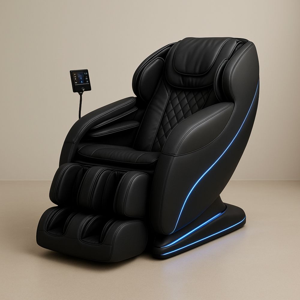 Poltrona Massaggiante in Pelle Sintetica Nera con LED e Schermo Touch