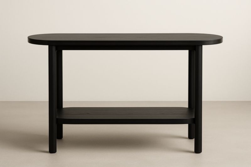 Tavolo da Console in Legno di Quercia Nero con Ripiano Ovale